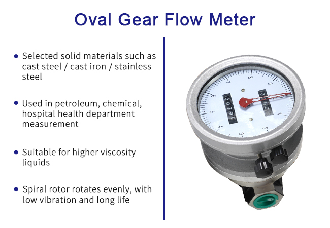 Oval gear flowmeters are a type of volumetric flowmeters, which are a class of high accuracy in flow meters. It uses a mechanical measuring element to continuously divide the fluid into a single known volume part, and measures the total volume of the flow according to the number of times the metering chamber fills and discharges the fluid in the volume one by one. Oval gear flowmeters can be made of different materials (cast iron, cast steel, 304 stainless steel, 316 stainless steel), and are suitable for flow measurement in industrial sectors such as chemical, petroleum, pharmaceutical, power, metallurgy, and food.